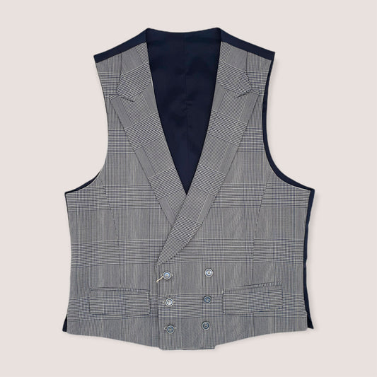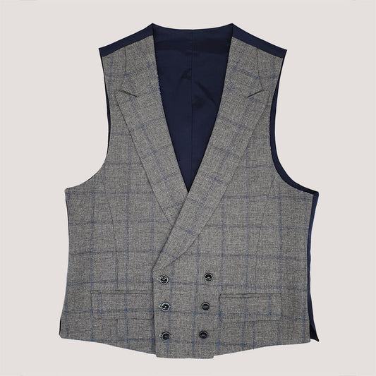 Chaleco de Ceremonia Reversible Gris Cuadro/Azul Retro
